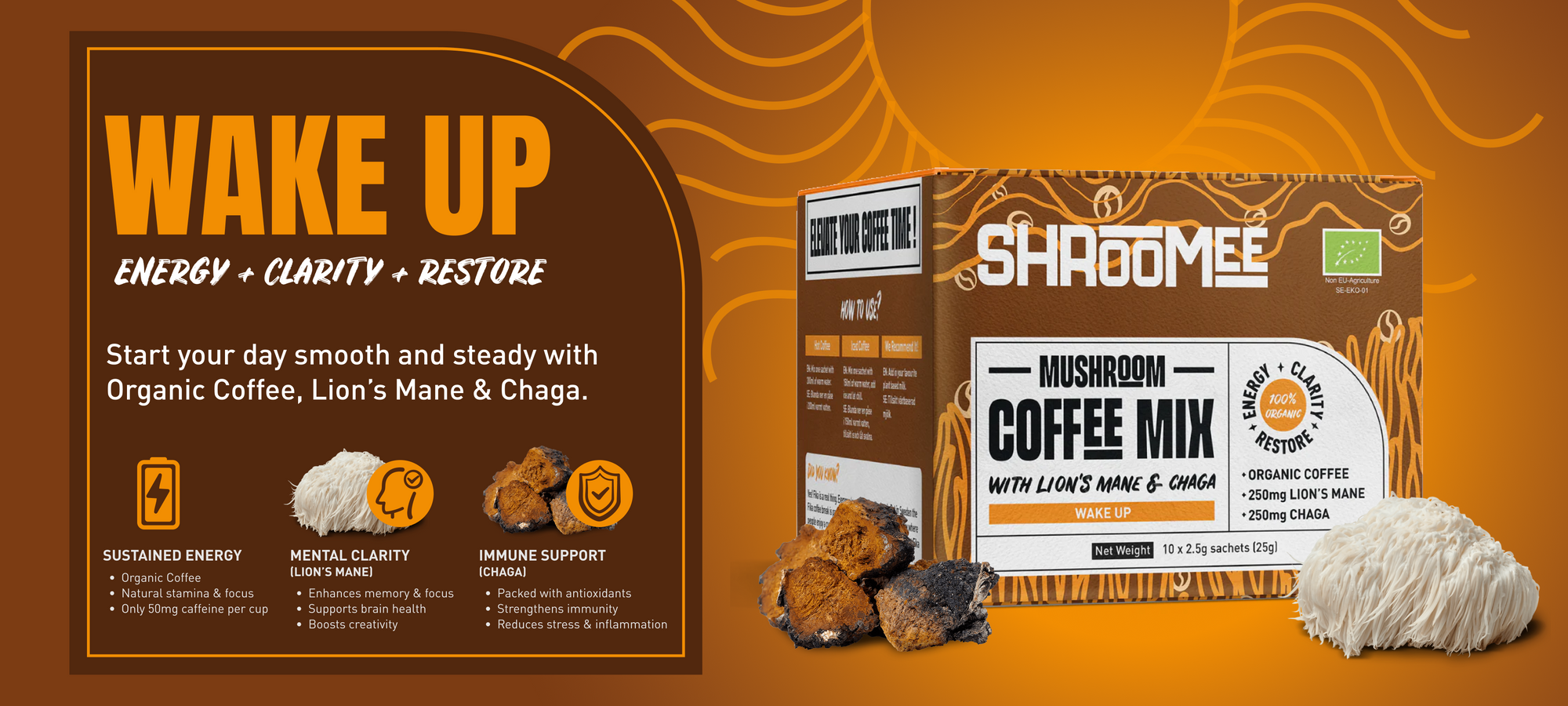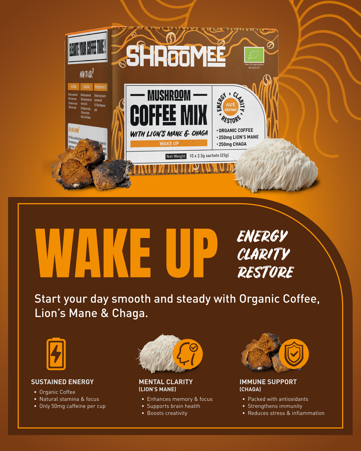 A rich organic instant coffee blended with Lion’s Mane and Chaga. Wake Up gives you the focus of coffee with a grounded, balanced twist.