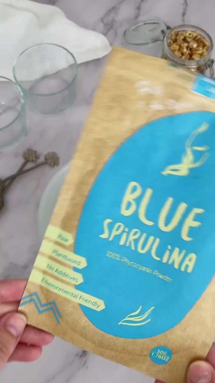 Blue spirulina powder is a vibrant, electric blue powder. This powder is known for its striking color, which can transform any dish into a visual masterpiece. With a neutral flavor, blue spirulina is perfect for adding a pop of color to smoothies, smoothie bowls, lattes, and desserts without altering the taste. It's also popular in the natural food coloring industry due to its intense pigment and all-natural origin.